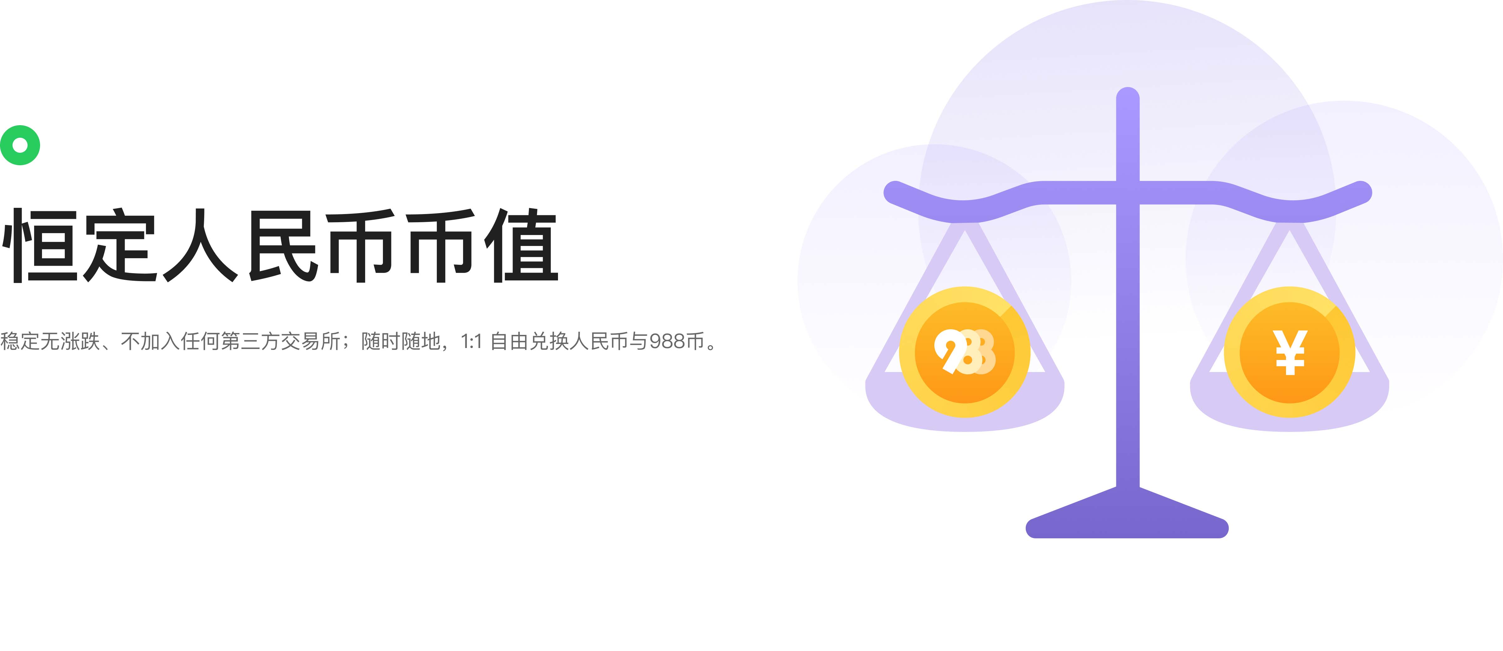988币,恒定人民币汇率,100%互兑;全球通用数字资产。